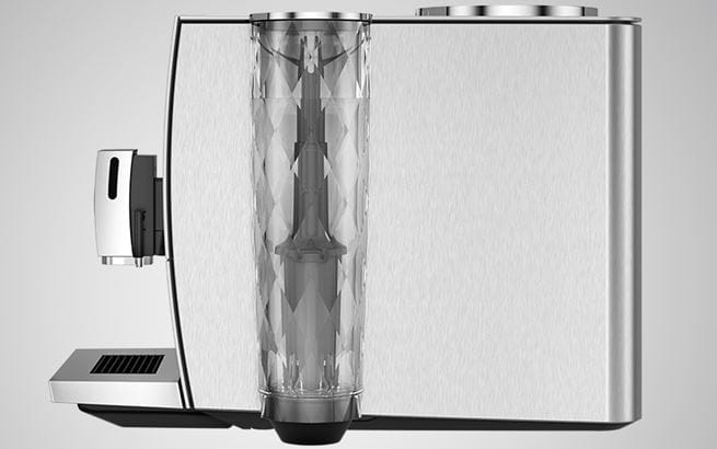 A particular highlight of the design is the round water tank. Its pattern combined with its cylindrical shape is inspired by premium crystal carafes.