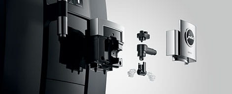 The maintenance of the new GIGA X8c is just as straightforward, logical and intuitive as its operation. Original JURA maintenance products and integrated rinsing and cleaning programs ensure TÜV-certified hygiene at the touch of a button. The milk system is also very easy to clean. The fully automatic process is started with just a touch on the display and ensures perfect cleanliness. The solid dual spout can be dismantled in just a few easy steps. The milk spouts at the front are readily accessible and easy to replace if necessary.