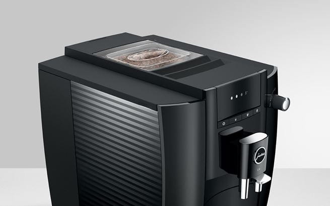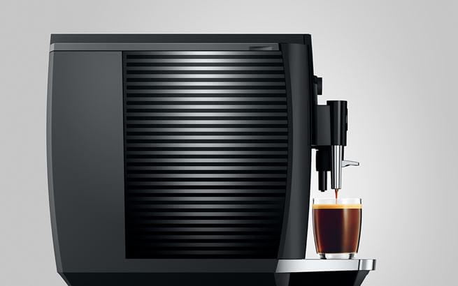 The E4 reflects the characteristic design of JURA coffee machines, with clean lines and surfaces. Crafted with maximum precision, the minimalist lines emphasize the premium quality of the machine. The use of colors follows the same minimalist approach. While the complete body of the machine is in understated Piano White, chrome-plated details add accents and set off the finished coffee to perfection.
